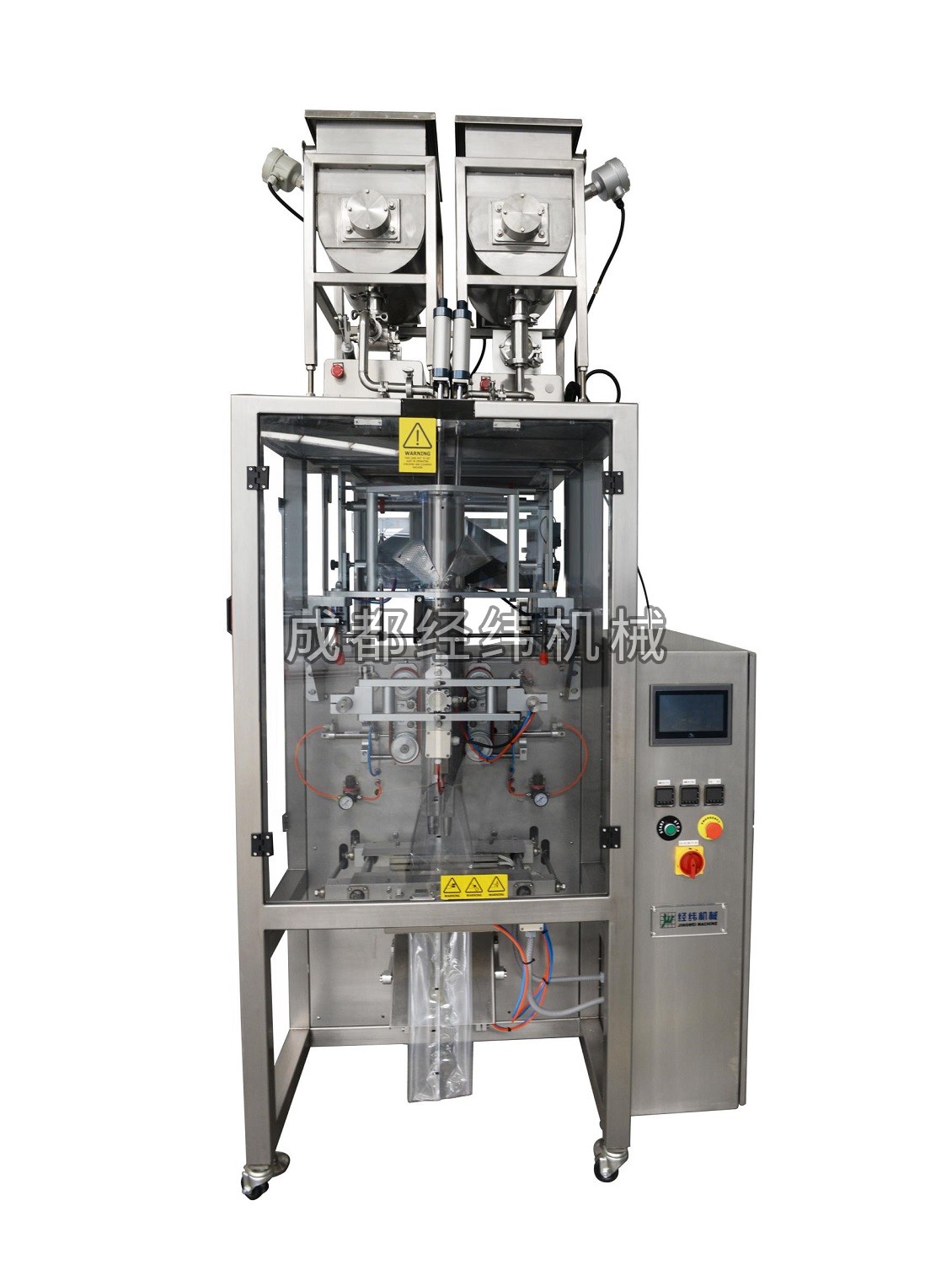 該機型采用了PLC工業計算機系統控制,通過顯示屏觸摸屏,可方便、準確地完成制袋尺寸、包裝容量、包裝速度等功能參數的調節及自動校準等功能的設置。設備采用了兩段夾板封口,可滿足三邊封和背封兩種包裝形態,可配置不同的下料裝置,滿足不同的物料包裝。